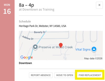 - In Today’s Schedule, click the shift for which you need to find a replacement.