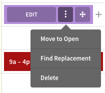 - Hover your cursor over the shift for which you need to find a replacement, click More button, then click Find Replacement.
