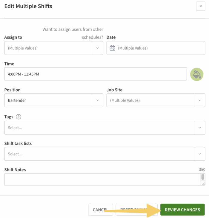 - Click the shifts you want to edit by selecting them individually, by user, position, or the day.