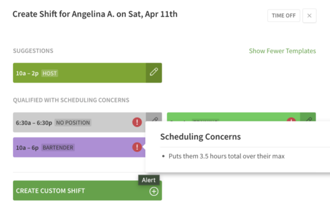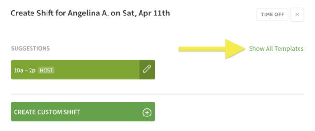 When using shift templates, templates that will cause scheduling concerns will be hidden but can be viewed by clicking Show All Templates.