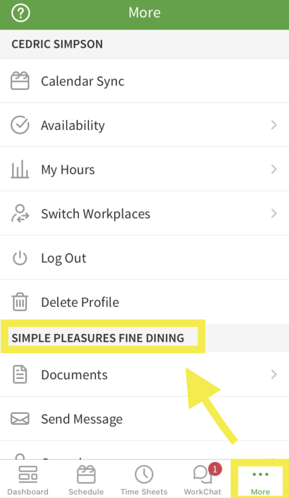 - See the name of the workplace listed just below the Log Out (Android) and Delete Profile (iOS device) button